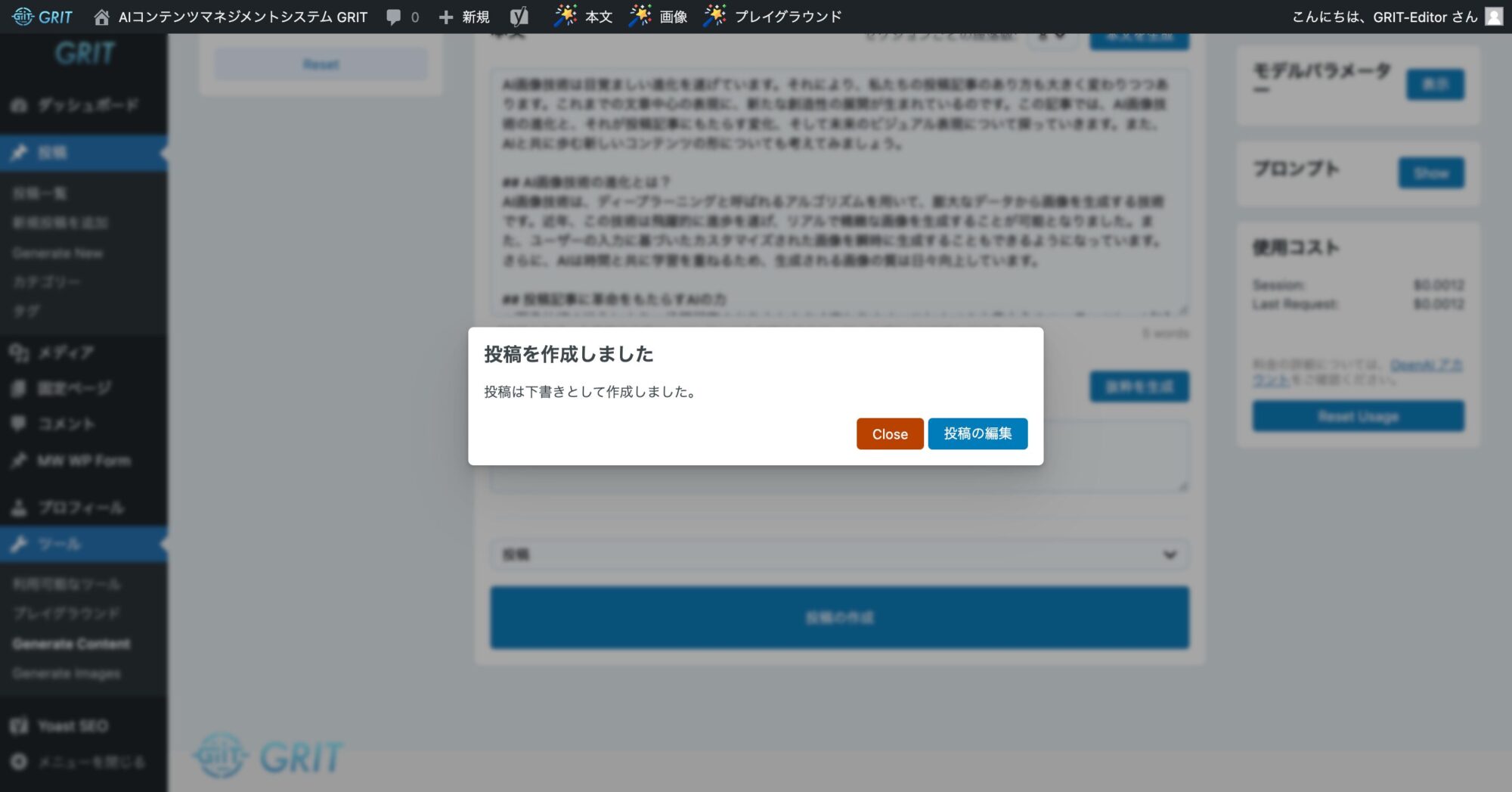 記事が作成されたら一番下までスクロールし、「投稿の作成」をクリックします。