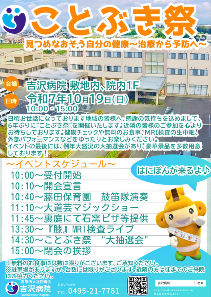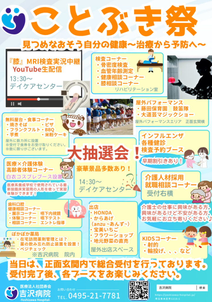 吉沢病院では、2019年まで毎年この時期に『ことぶき祭』という、地域の健康促進を目的とした地域向けのイベントを実施しておりました。